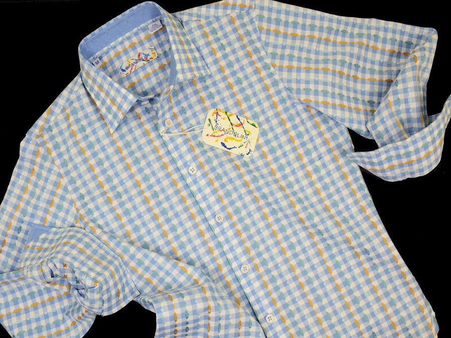 Formal wear by Brandolini will help show off his most elegant side. This Brandolini 18670 100% Cotton Boy's Sport Shirt is no exception, crafted from cool, breathable 100% Cotton, it is not only stylish, but also a comfortable selection for weddings, dinner parties, and more year round. This sleek Sport shirt features a dobby checks style and Blue/Green/Orange coloring. It includes a modified spread collar, no front pocket, button cuff, and removable collar stays. Paisley-Patterned Cuff Trim, Under Collar Trim, Paisley-Patterned Side Seam Trim, and Bottom Accent Stitching add to the eye-catching appearance of this shirt. Easy care, machine washable. Crafted by Brandolini, a leader in boy's formal attire.