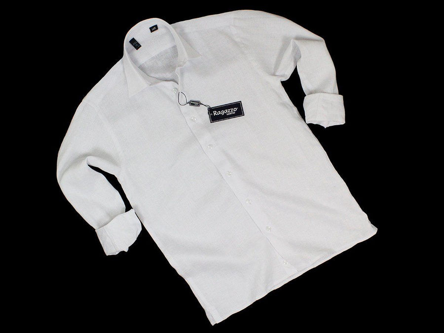 Ragazzo 19272 100% Linen Boy's Sport Shirt - Linen - White, Long Sleeve
