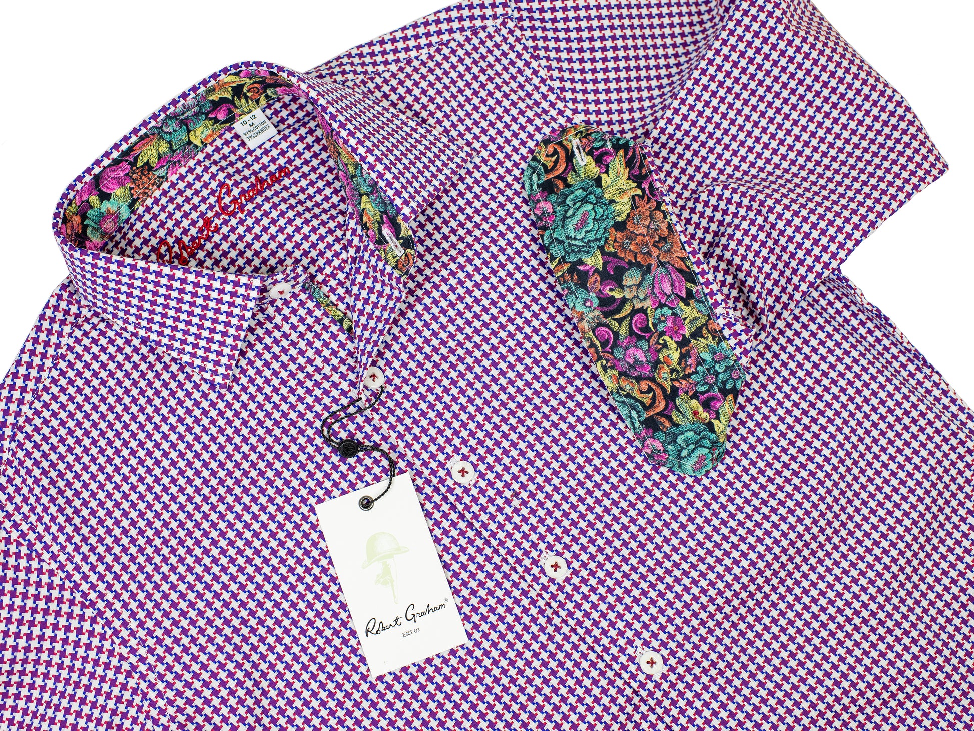 Model: Cutaway Collar | Long Sleeve, Button Cuffs | Contrast Interior Collar And Cuffs | Button Front Closure With Snap Button Closure At Bottom | Signature Robert Graham Detailing | Hand Wash, Dry Flat |