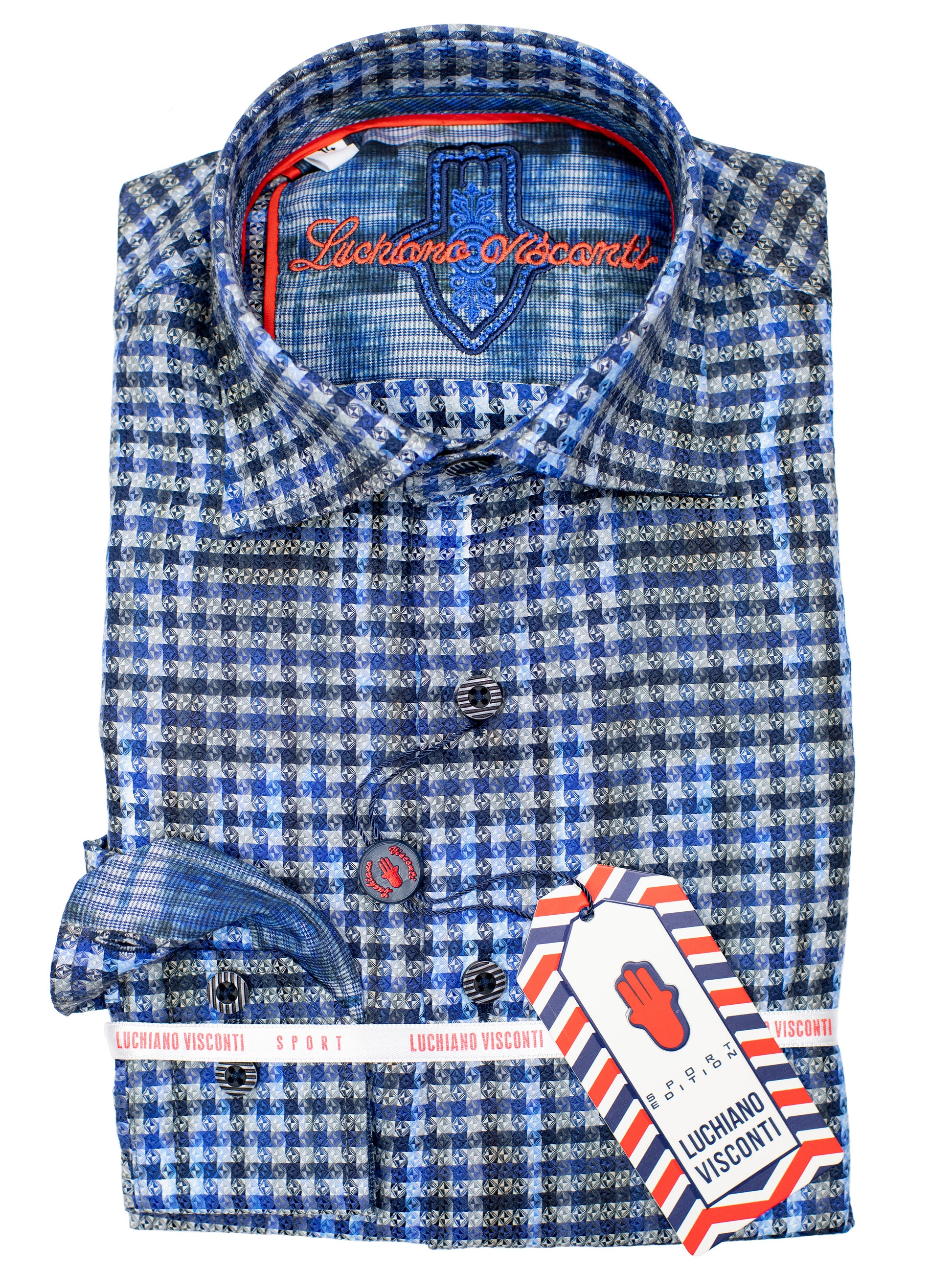 Luchiano Visconti Boy's Sport Shirt 30030 - Check - Blue