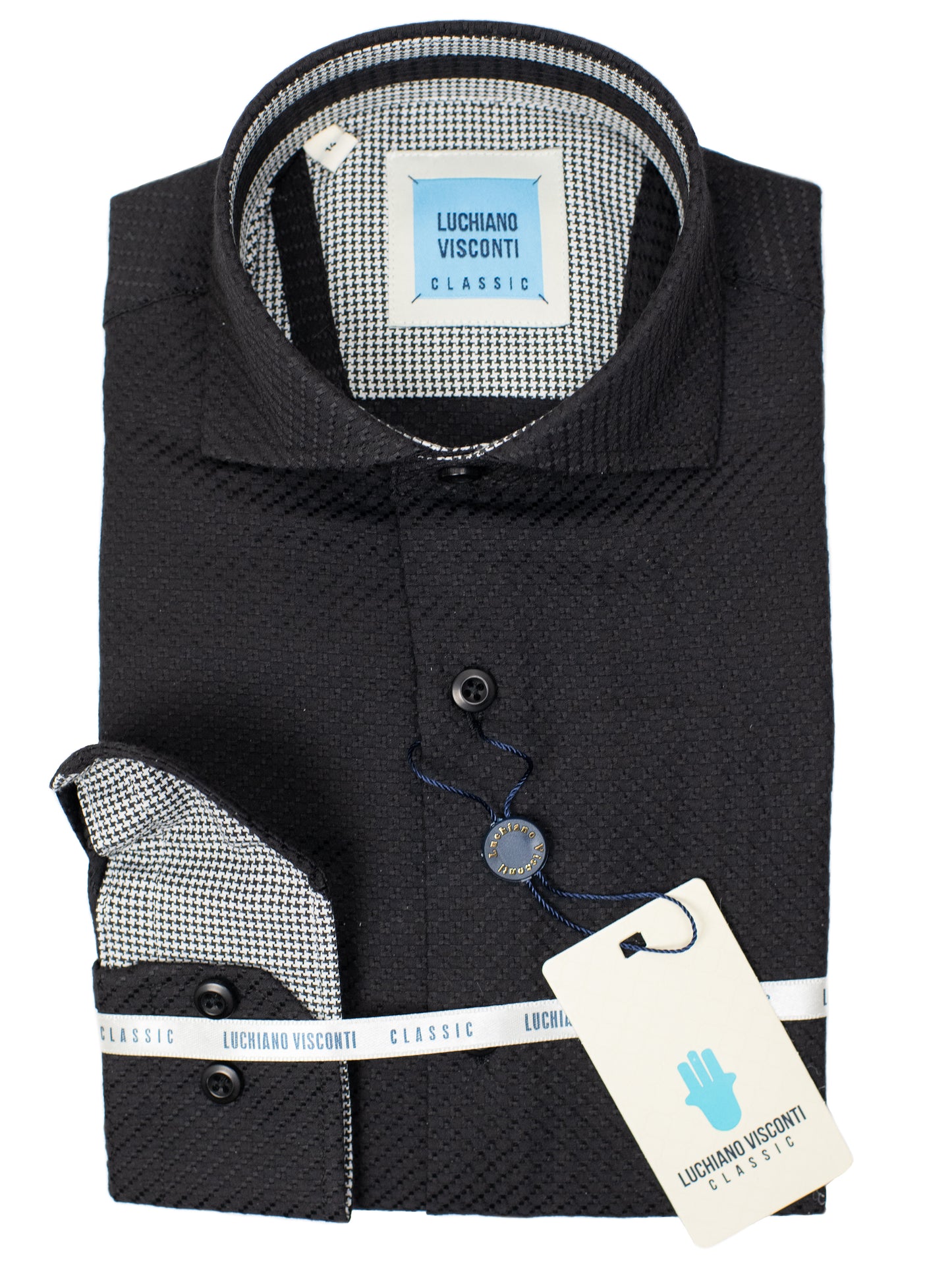 Luchiano Visconti Boy's Sport Shirt 30326- Tonal Diamond - Black