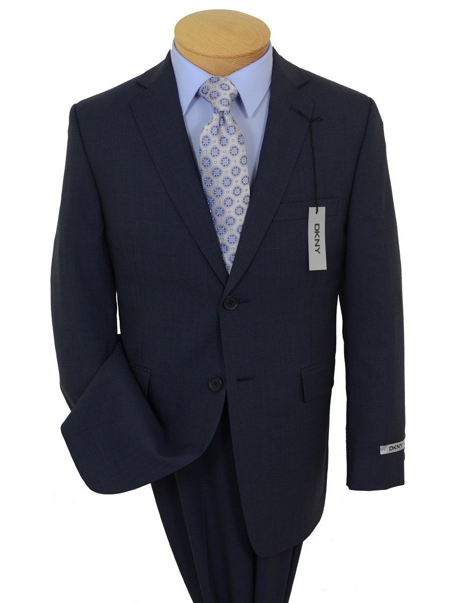 DKNY 19423 100% Wool Boy's Suit - Mini Check - Blue