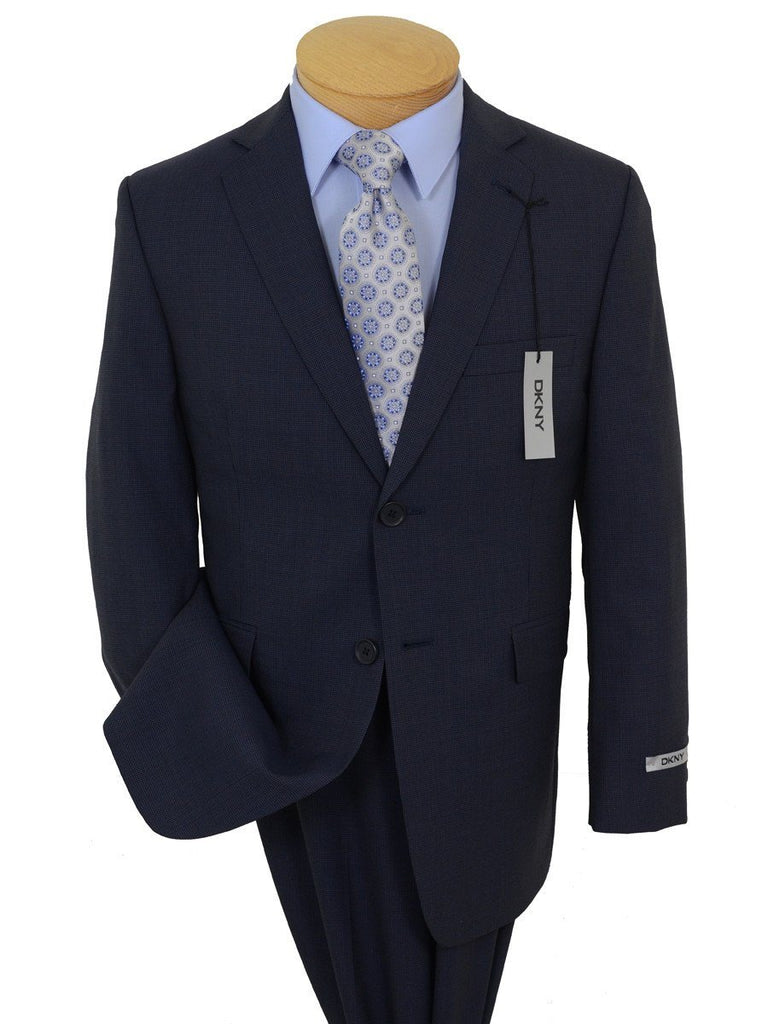 Offering a classic, polished look, the DKNY 19423 100% Wool Boy's Suite will make your little gentleman look dapper. Its is a great selection for an important occasion, such as a wedding, Bar Mitzvah, First Communion, graduation party, and more. With a rich blue color, and made from 100% wool, he will feel composed, and comfortable. The two-button single breasted fully lined jacket features a notched lapel, a lapel buttonhole, and side vents. Ample room for all his accessories is provided by a functional breast pocket, two hip flap pockets, two inside breast pockets, and an accessory pocket. The plain front style pant is lined to the knee with quarter top pockets, an button through besom back pockets, a split waist band with approx. 1.5 inches of let out room, and an unfinished bottom for easy alteration. Dry Clean Only. Masterfully designed by DKNY.