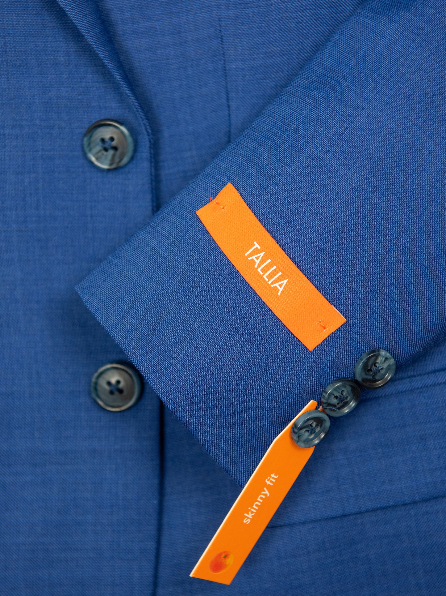 Features of the Tallia 28795 70% Wool/ 30% Polyester Boy's Skinny Suit - Sharkskin - Medium Blue: