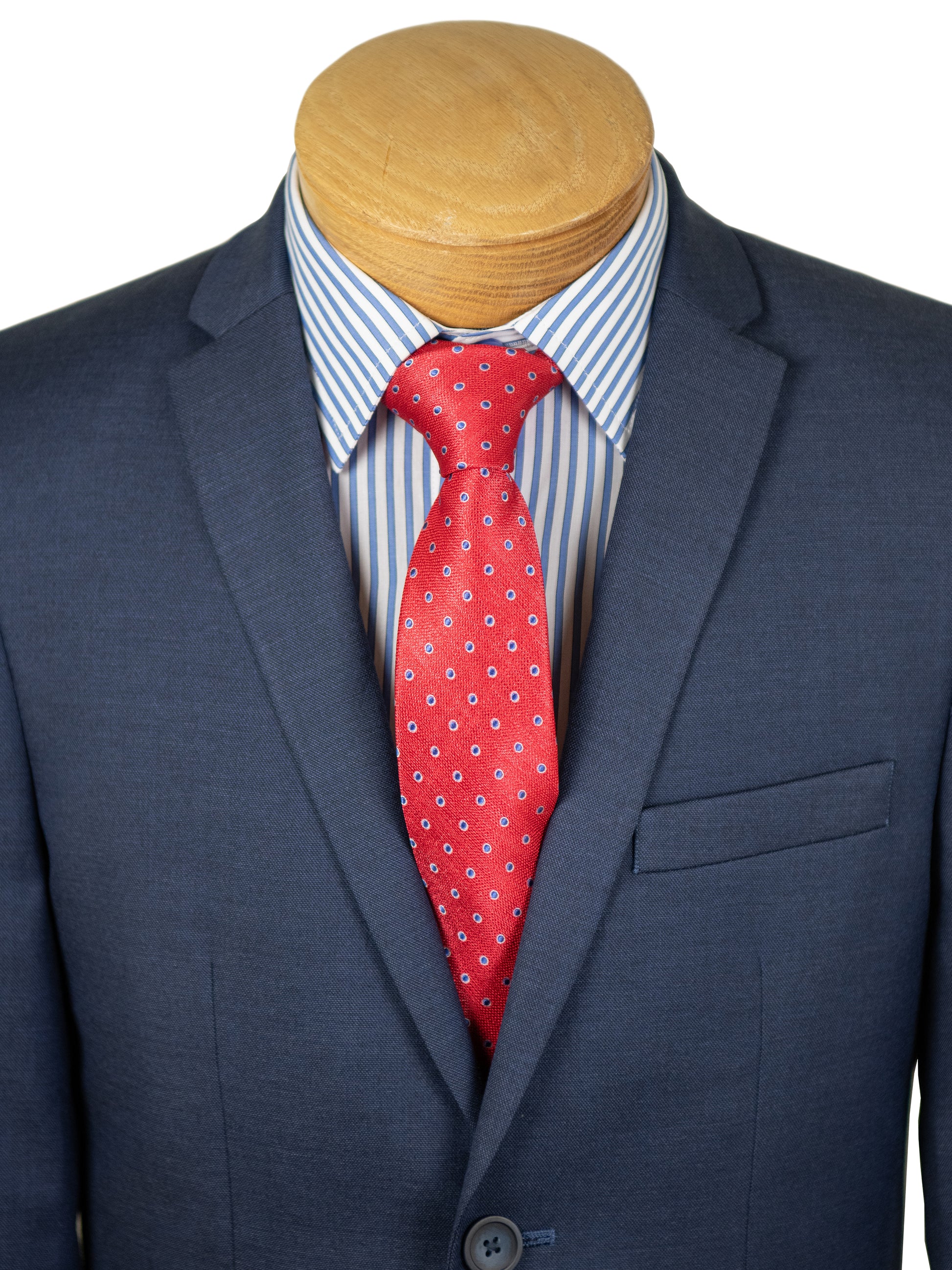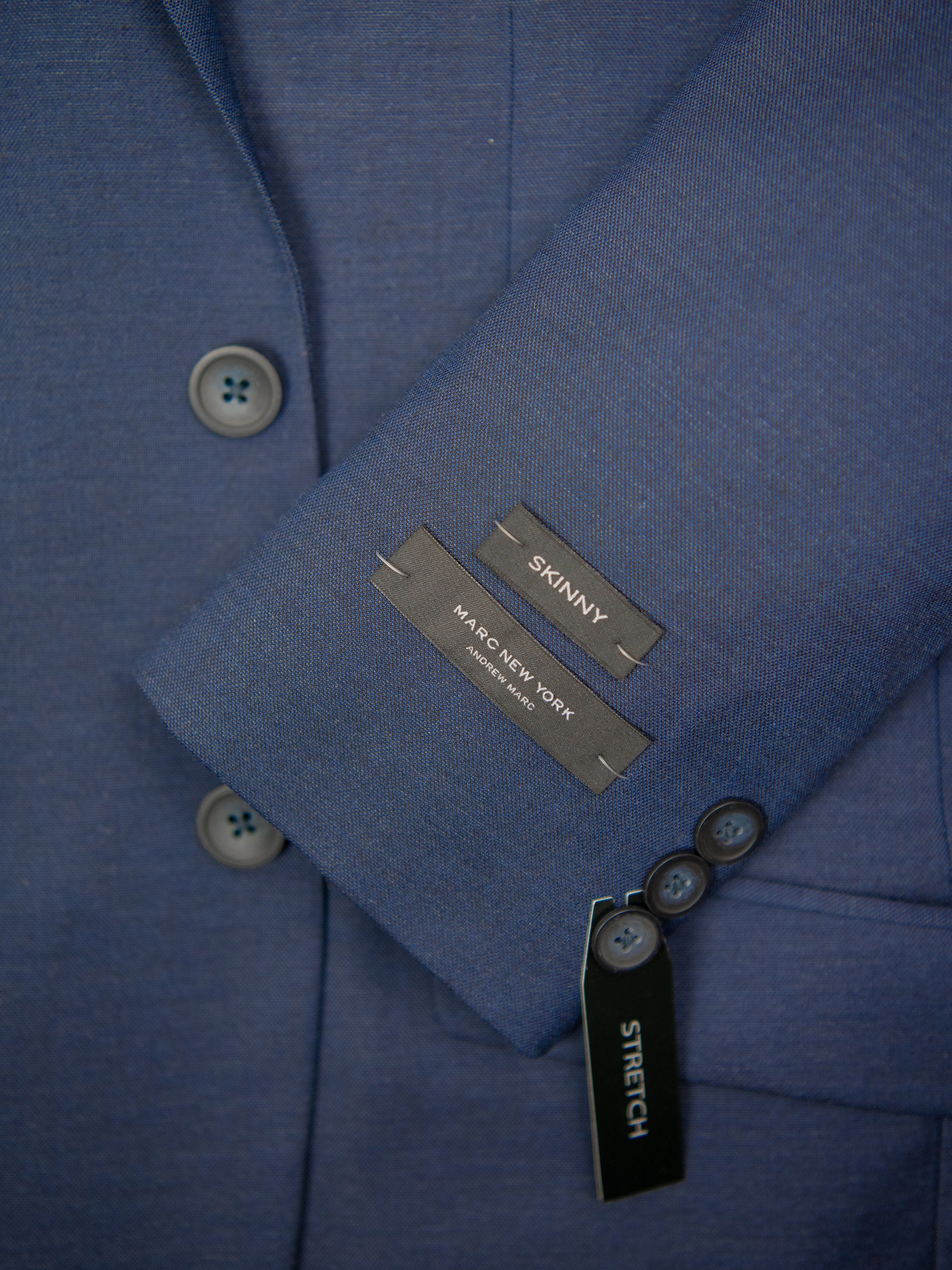 A boys suit from Andrew Marc will make him look positively dapper. Show off your proper young gentleman's modern side in the 30838 Bright Blue Sharkskin Boys Suit. He will radiate traditional and elegant. Made out of 75% polyester/ 22% viscose/ 3% spandex, this boys suit is breathable and cool, making it ideal for any family get-together or holiday party This two button single breasted, fully lined boys suit includes side vents, notch lapel, and contrast interior piping. For all of his necessities, there are a single breast pocket, two flap front pockets, a besom ticket pocket, two interior besom breast pockets, and an interior accessory pocket. The plain front pants come with single button thru besom back pocket, and unfinished bttom.