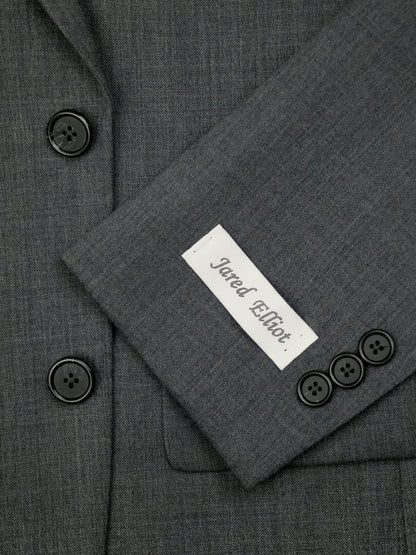 A boy's suit by Jared Elliot offers classic and elegant style. Show off your dapper young gentleman's traditional side in the 36877 Grey Heather Grey Boys Suit. An ideal boy's suit whose grey coloring make a classic, timeless statement when paired with a bold dress shirt. Constructed of 52% Wool/47% Polyester/1% Lycra, this boy's suit offers both panache and comfort all year long. This two button single breasted boy's suit features side vents, notch lapel with button hole, and split sleeves. Ample room for his necessities is available with a single exterior welt breast pocket, and two exterior hip flap pockets. The plain front pants include quarter top pockets, and a single button thru besom back pocket. There is an unfinished bottom allowing for easy adjustment. Dry Clean Only.