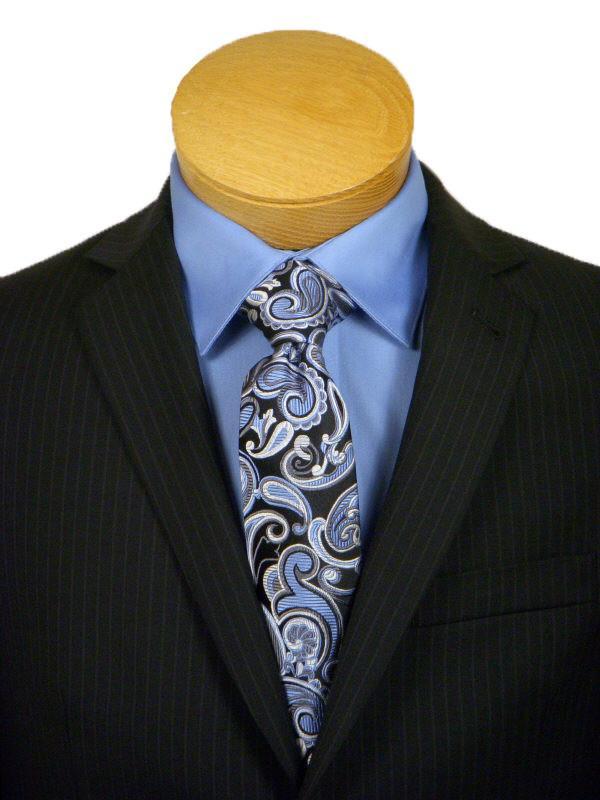 A constant classic. Give him a handsome look with the 8503 Black Stripe Boy's Suit. This black, stripe boy's suit features a year round weight. This 2 button single breasted, fully lined boy's suit comes with notched lapel, and side vents. For all of his necessities, there are 2 hip flap pockets, a functional breast pocket, an inner ticket pocket, 2 inner besom pockets, and an inner cell phone pocket. The pants include plain front, and are lined to the knee.