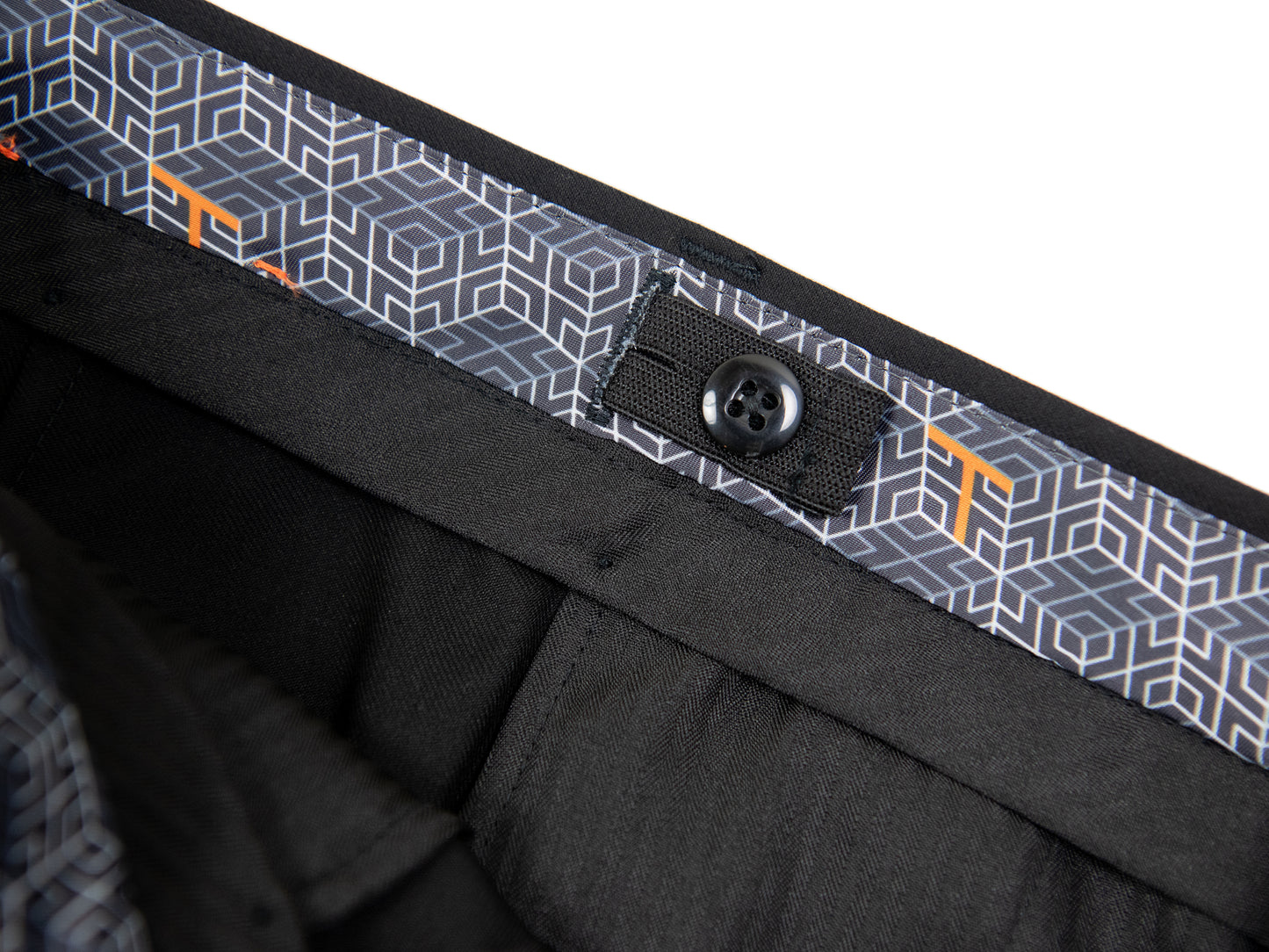 - Pant: Skinny fit with a quarter top pockets with a single button thru besom back pocket, an adjustable stylized waistband with button elastic with 1.5'' of let out room in waist and a narrow leg.