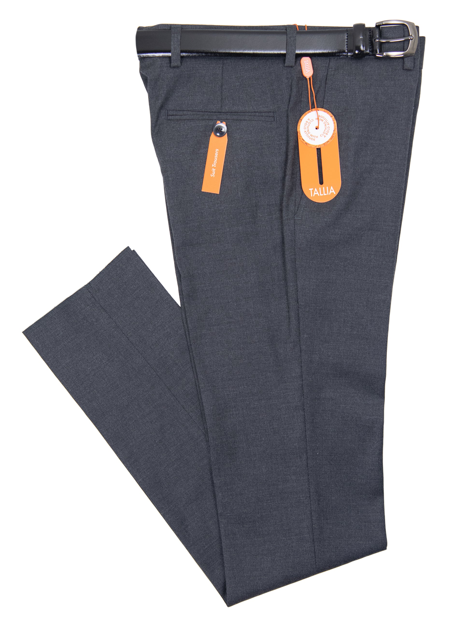 He will look sharp in the 32179P Charcoal Boys Dress Pant. A Boy's Dress Pant from Tallia will make your young man feel subtle but elegant. This 68% wool/29% viscose/3% spandex, this boys' dress pant, has a natural stretch and is breathable for all day use. The pants are skinny fit with two quarter top pockets, one button thru besom back pocket, stylized interior waist band , and button thru elastic waistband for easy adjustment. Dry Clean Only. This boy's suit separate pant matches the Tallia 32179 Boy's Suit Separate Jacket - Charcoal. Sold Separately.
