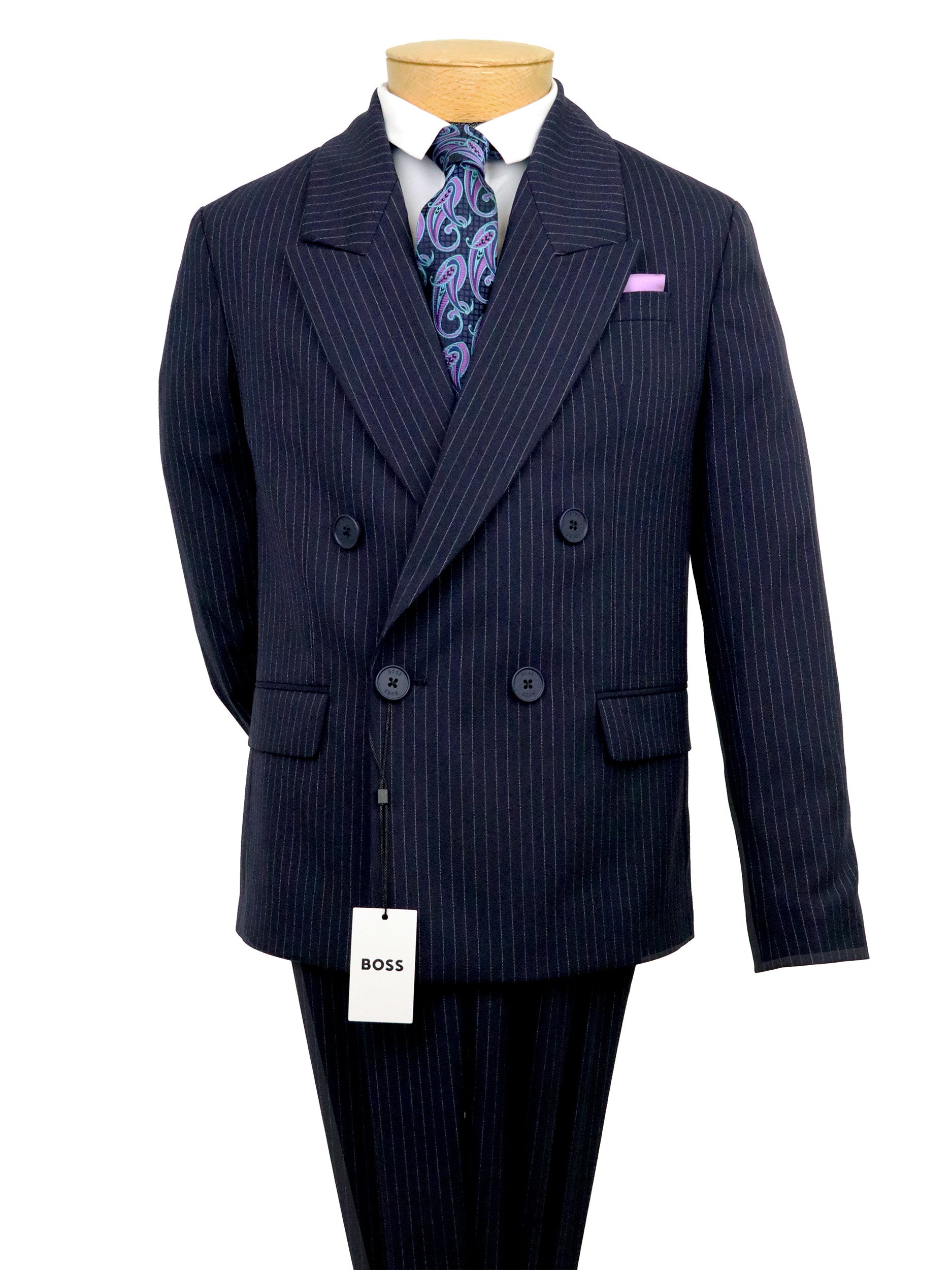 Boss 37212 Double Breasted Boy's Suit Separate Jacket - Stripe - Navy