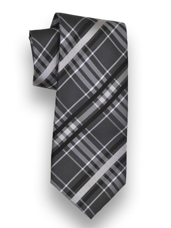 The Heritage House 13268 Charcoal/Black Boy's Tie gives him a sophisticated look he'll love. A great finishing touch for any important occasion, this Heritage House 13268 Charcoal/Black Boy's Tie offers a traditional, modern look. Crafted in a timeless, plaid style, this Heritage House tie proves an invaluable addition to his wardrobe. A great match to any black, or dark gray 2-piece suit, the Heritage House 13268 Charcoal/Black Boy's Tie is an ideal choice for formal occasions. Crafted from the finest Italian fabrics, this 100% woven silk tie provides a charming drape, and a smooth knot. Wool blend lining gives the tie a subtle hand in its ability to bounce back to its original form after wear. Length varies by size. Beautifully crafted by Heritage House.