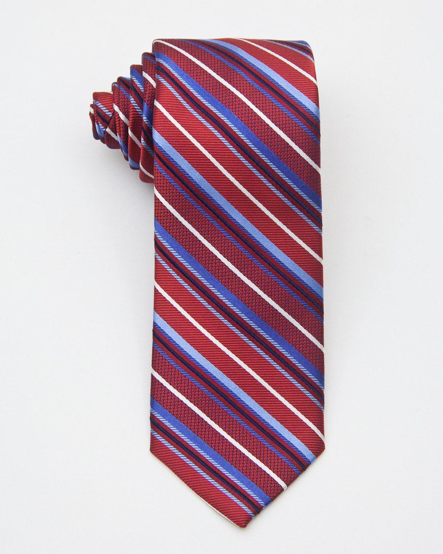 With a fashionable tie from Heritage House, you know he will always look his best. Helping him make a fun, bold statement in a Red / Blue color and Stripe Style this Heritage House 20714 100% Silk Woven Boy's Tie is a great choice for springtime lunch parties with the relatives, graduations, and more. Crafted using only the finest Italian fabrications, it offers a smooth, even knot, and stunning drape. Wool blend lining gives the tie a subtle hand in its ability to bounce back to its original form after wear. Length varies by size. By Heritage House, a renowned leader in boy's formal wear.