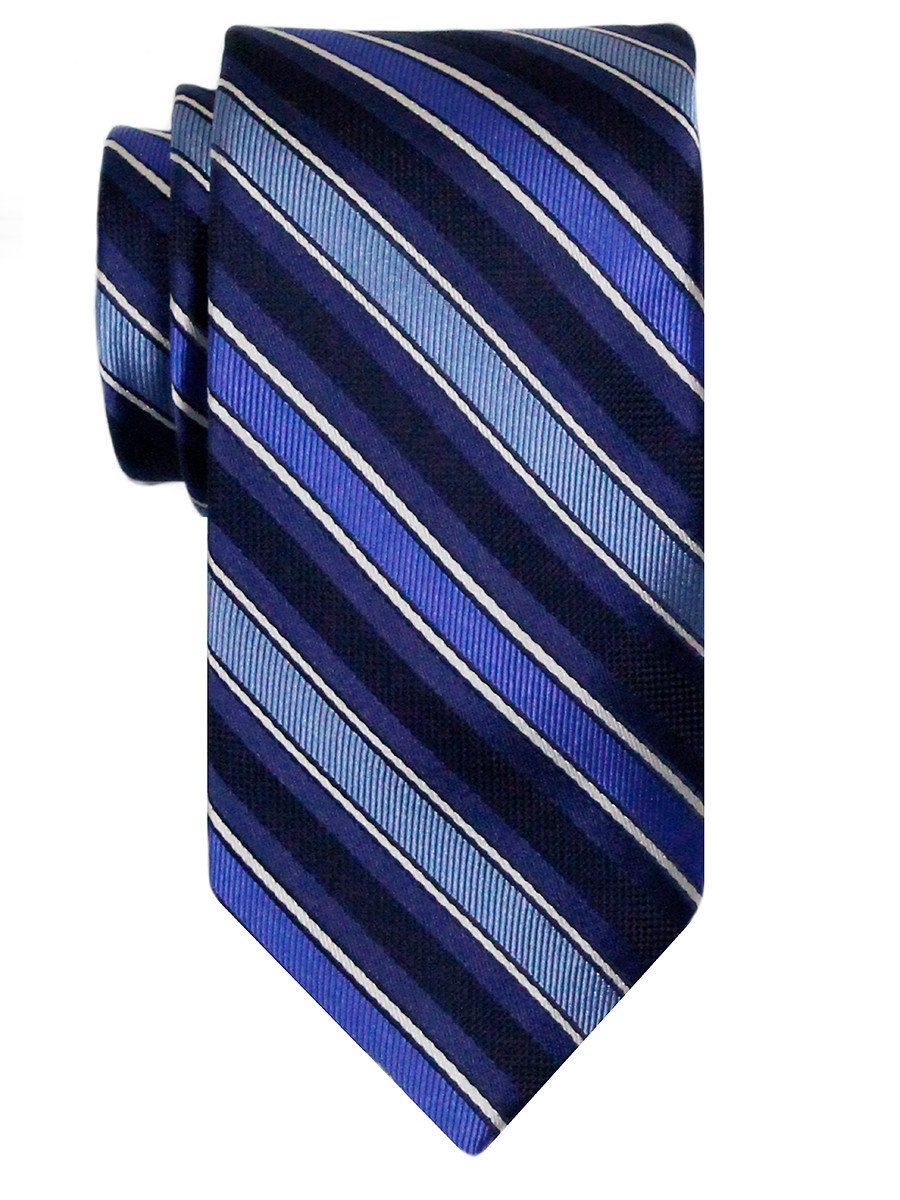 Give him a cultured look for bar mitzvahs, weddings, or graduations in this Heritage House 24514 Navy Boy's Tie. Ideal for gatherings like bar mitzvahs, weddings, or graduations, this navy coloration, stripes tie delivers a clean, bold look. Crafted from the finest Italian fabrications, this 100% silk tie provides a charming drape, and a smooth knot. Wool blend lining gives the tie a subtle hand in its ability to bounce back to its original form after wear. Length and width vary by size. Artfully crafted by Heritage House, a leader among boy's formal fashion.