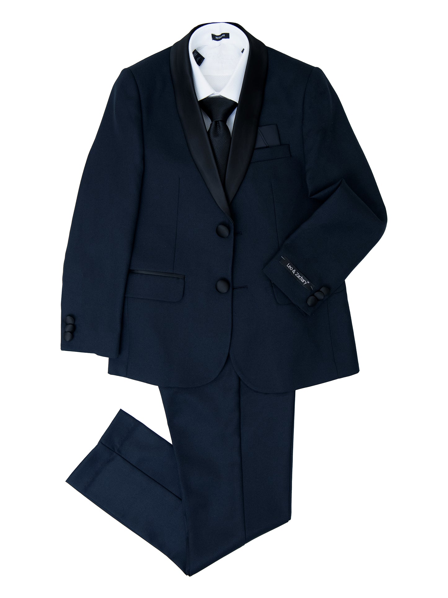 Features of the Leo & Zachary 36313 Boy's Skinny Fit Tuxedo - Solid - Navy: