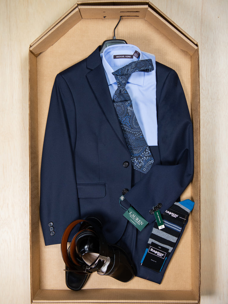 - Every suit, sportcoat and jacket is pressed and shipped in a zippered, re-usable garment bag and custom made shipping box.