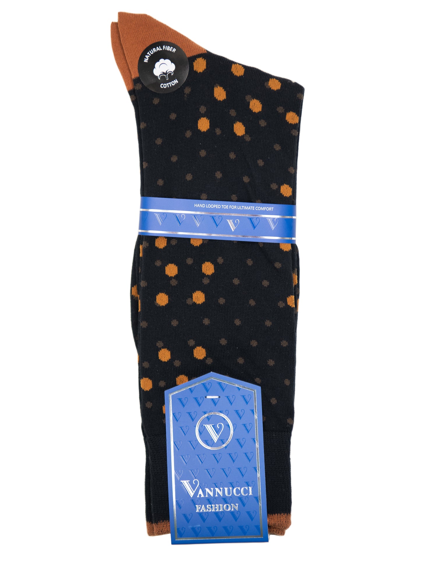 Vannucci Men's Socks 32477- Polka Dots - Black/Orange