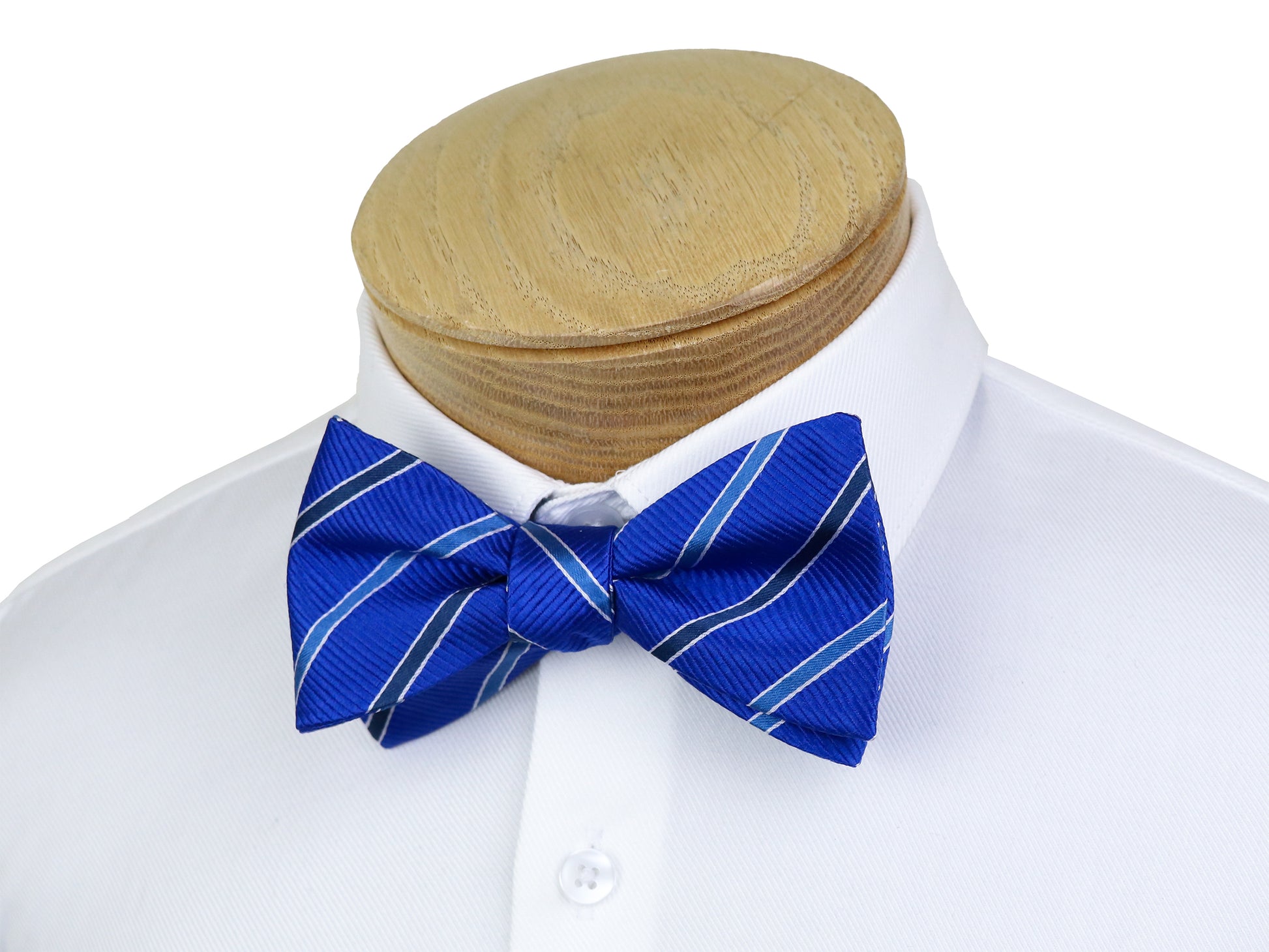 Features of the ScottyZ 37597 Young Men's Bow Tie - Stripe - Royal/White: