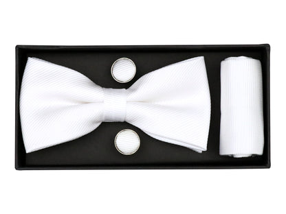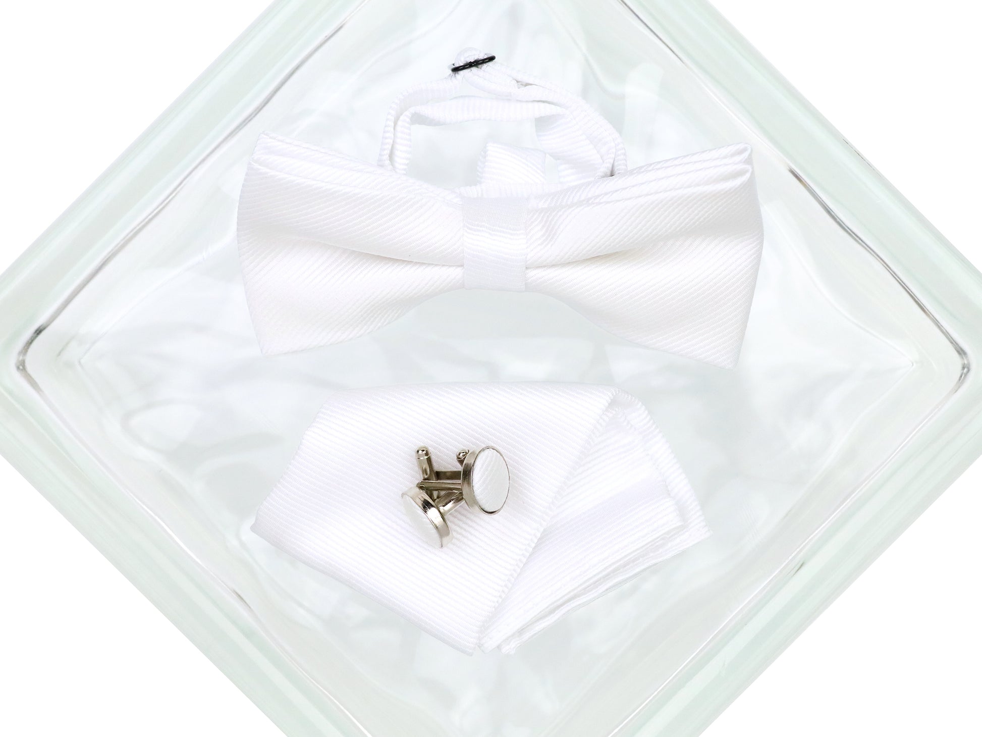 Features of the Heritage House 38083 Young Men's Bow Tie Set - Diagonal Solid - White: