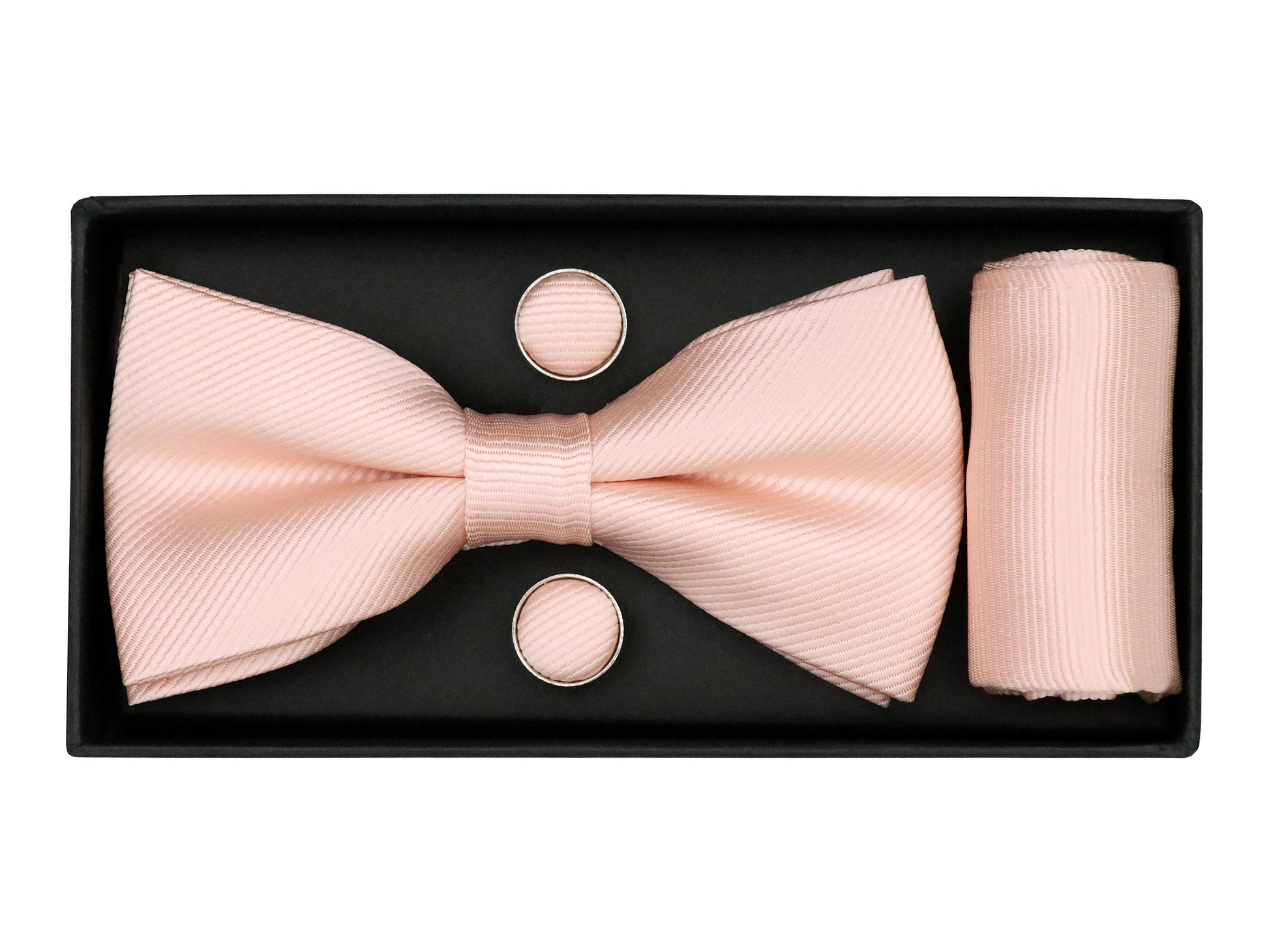 Features of the Heritage House 38084 Young Men's Bow Tie Set - Diagonal Solid - Light Pink: