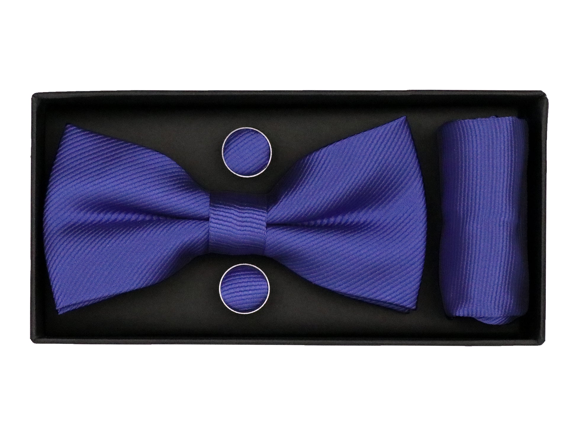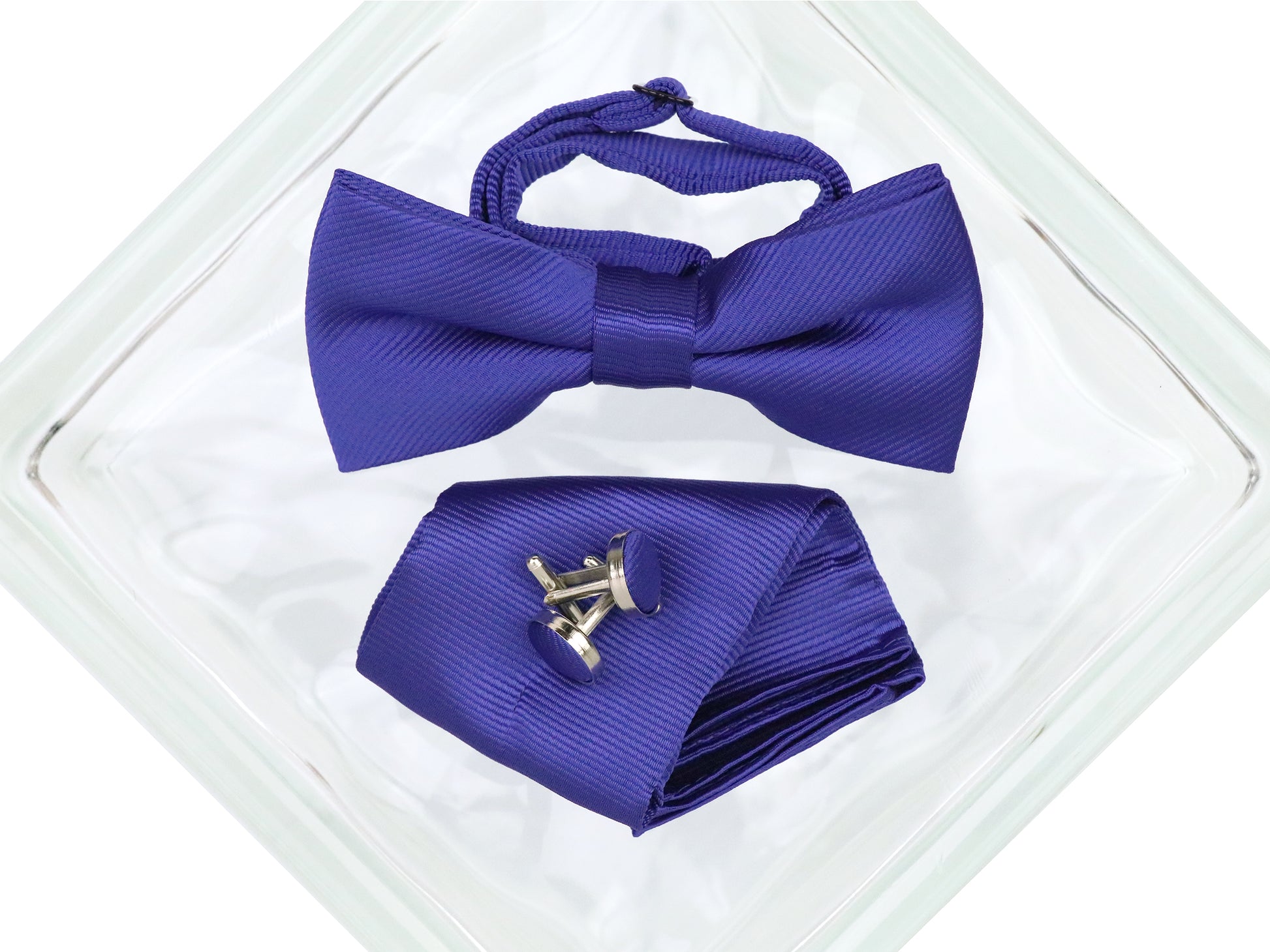 Features of the Heritage House 38087 Young Men's Bow Tie Set - Diagonal Solid - Blue: