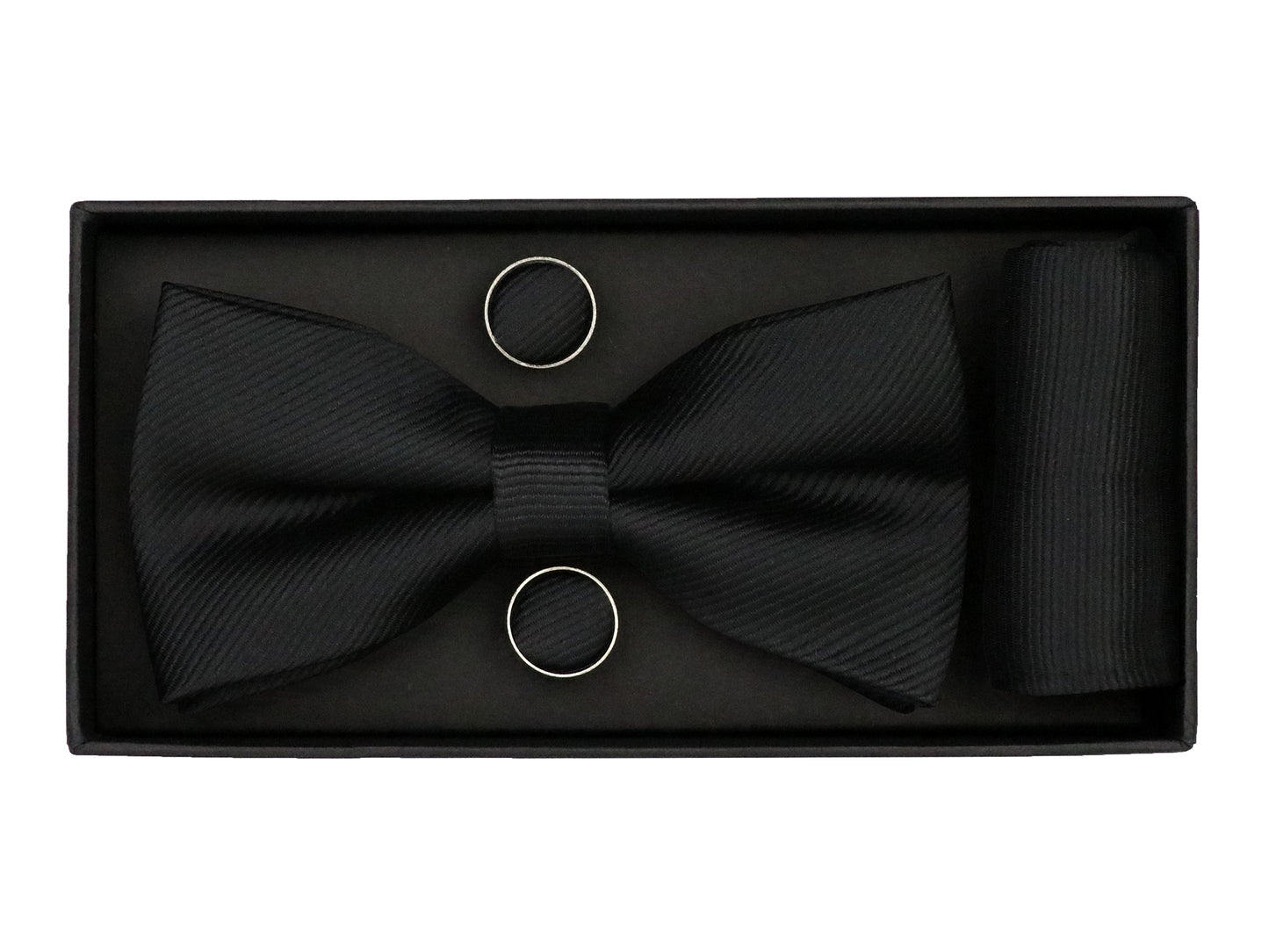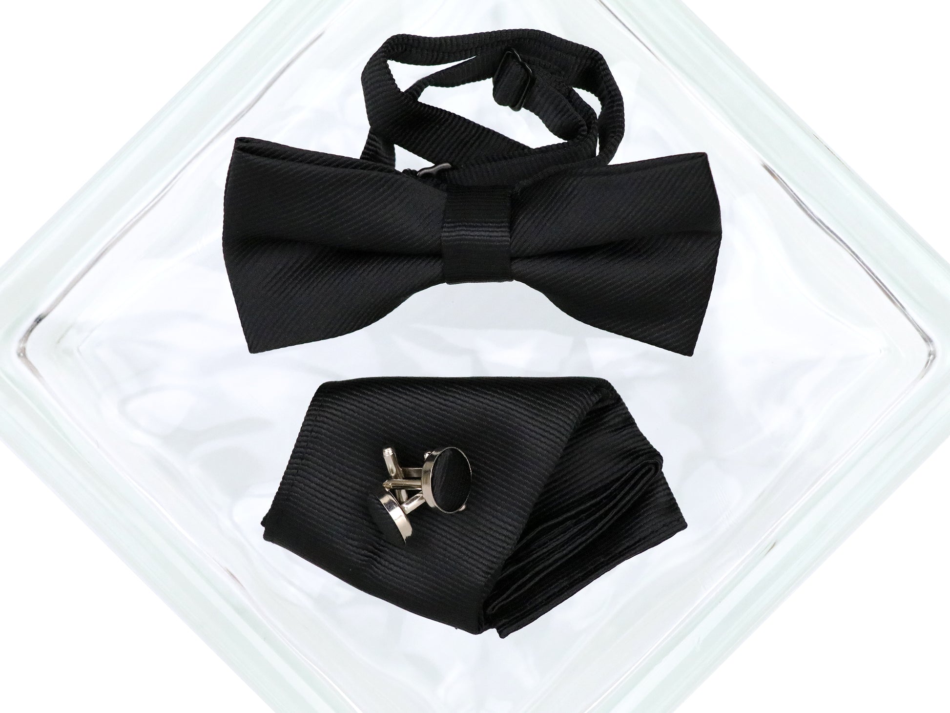 Features of the Heritage House 38089 Young Men's Bow Tie Set- Diagonal Solid - Black: