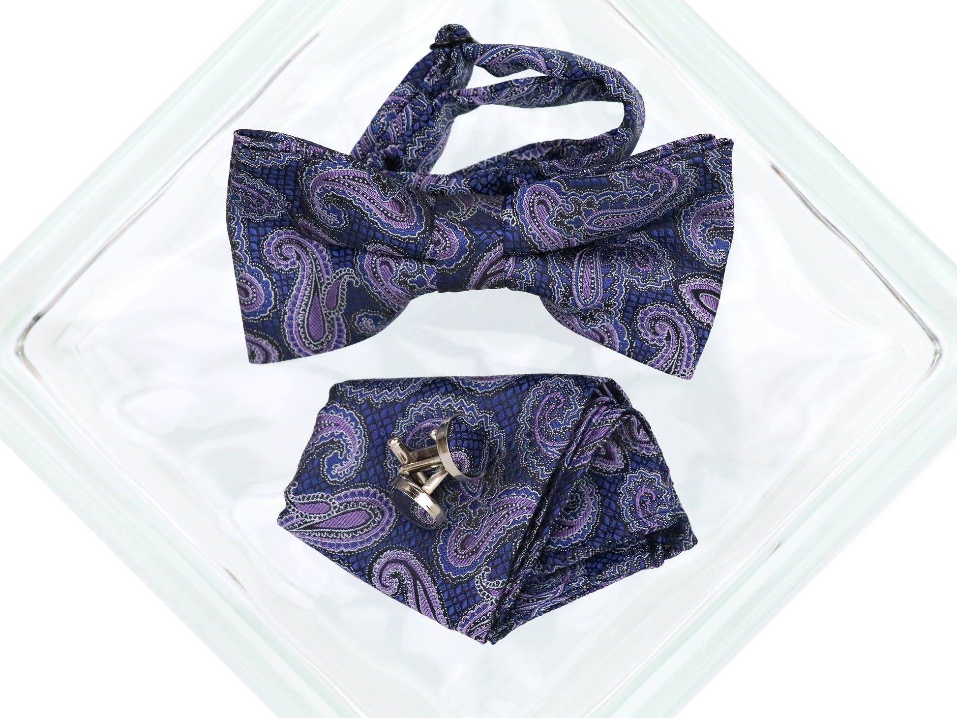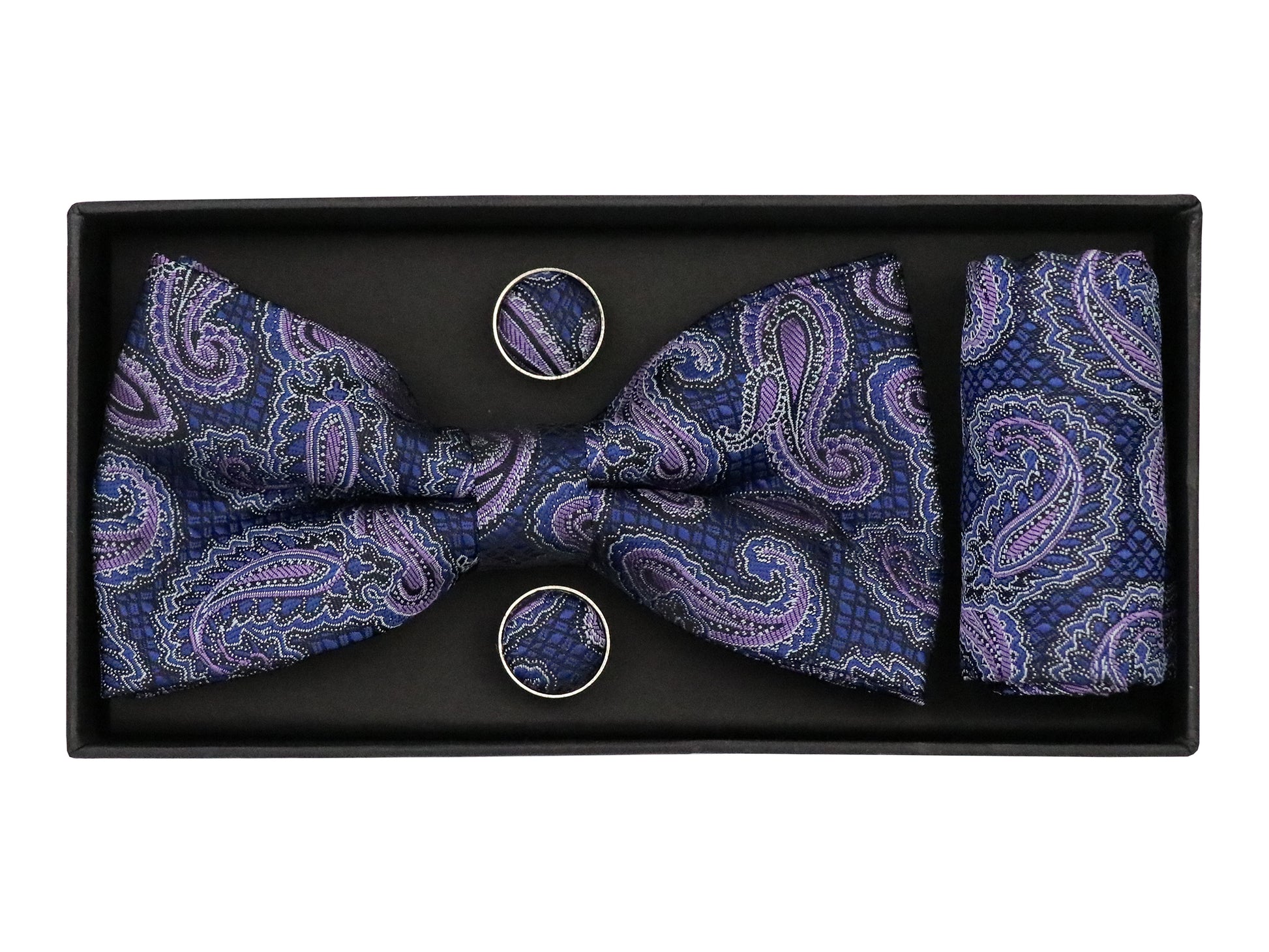 Features of the Heritage House 38099 Young Men's Bow Tie Set - Paisley - Navy/Purple: