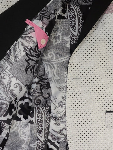 He will look cool and sophisticated in the Tallia 19382 100% Polyester Microfiber Boy's Sport Coat - Dot - White. A boy's sport coat by Tallia offers elegant and modern style. Delivering a memorable, yet modern spin on finished style, he will radiate class. Composed from 100% polyester microfiber, this boy's sport coat is breathable and cool, making it ideal for any first communion, graduation, or formal get-together. The Tallia 19382 100% Polyester Microfiber Boy's Sport Coat - Dot - White jacket features a slim, 1-button single breasted design. It includes a peak grosgrain lapel, side vents, stylized buttons, built-in pink floral pocket square, paisley lining, and pocket piping.